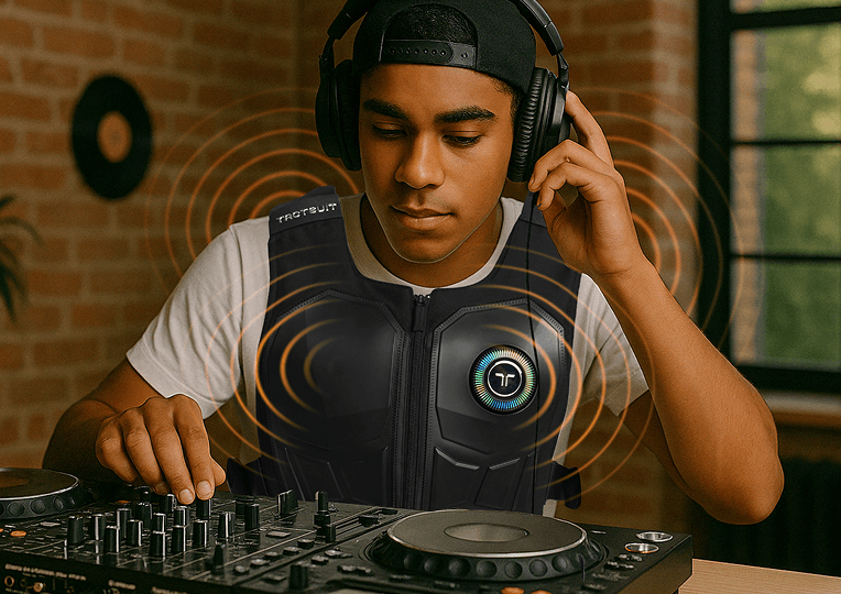 Haptic feedback generated with a real-time audio algorithm. Transforming sound into haptic feedback, letting you feel every beat, explosion, and impact.
